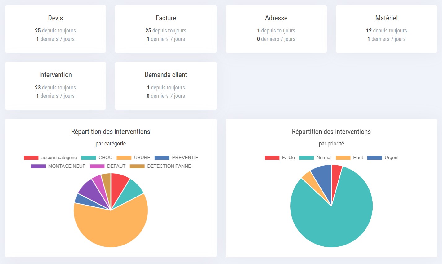 Analyse des répartitions des interventions effectuées.